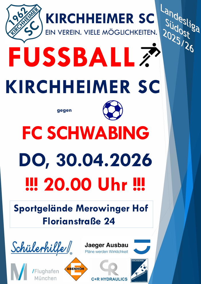 Am Freitag den 17.04.2026 findet das nächste Heimspiel des Kirchheimer SC gegen den TSV Kastl statt. Anpfiff ist um 19:30 Uhr – kommt´s gerne vorbei!