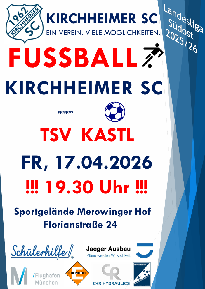 Am Freitag den 17.04.2026 findet das nächste Heimspiel des Kirchheimer SC gegen den TSV Kastl statt. Anpfiff ist